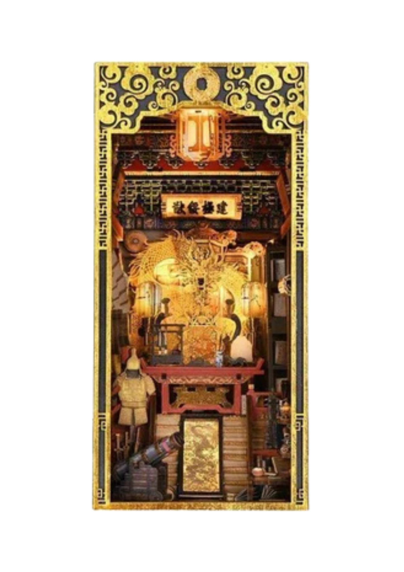 Step into the grandeur of ancient China with The Emperor's Study DIY Book Nook Kit. This meticulously crafted book nook brings to life the elegance and tradition of a Chinese Imperial Study, making it a perfect addition to any bookshelf.